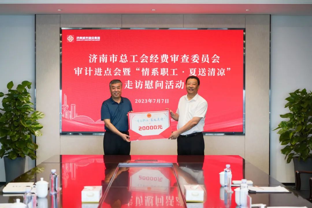 7月7日,市總工會黨組成員、經費審查委員會主任劉明忠帶隊到建設集團開展濟南市總工會經費審查委員會審計進點會暨“情系職工·夏送清涼”走訪慰問活動,市總工會經審辦主任宋強,建設集團黨委副書記鐘善良出席活動。