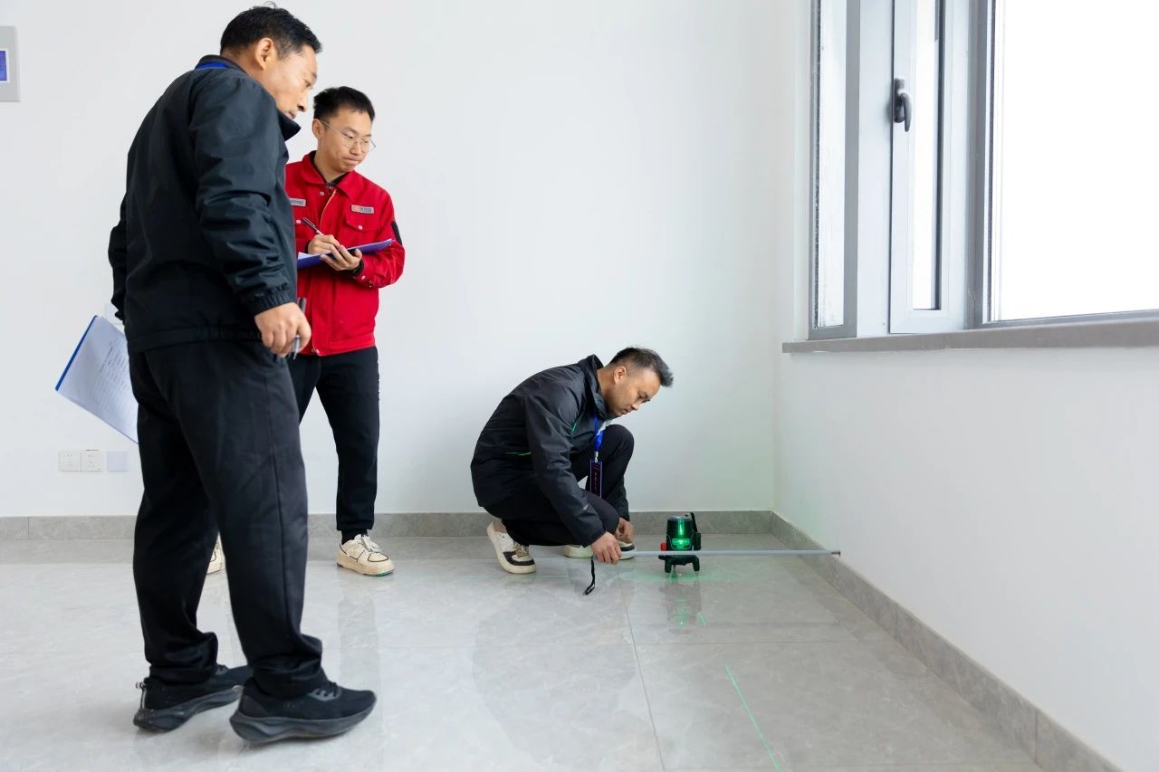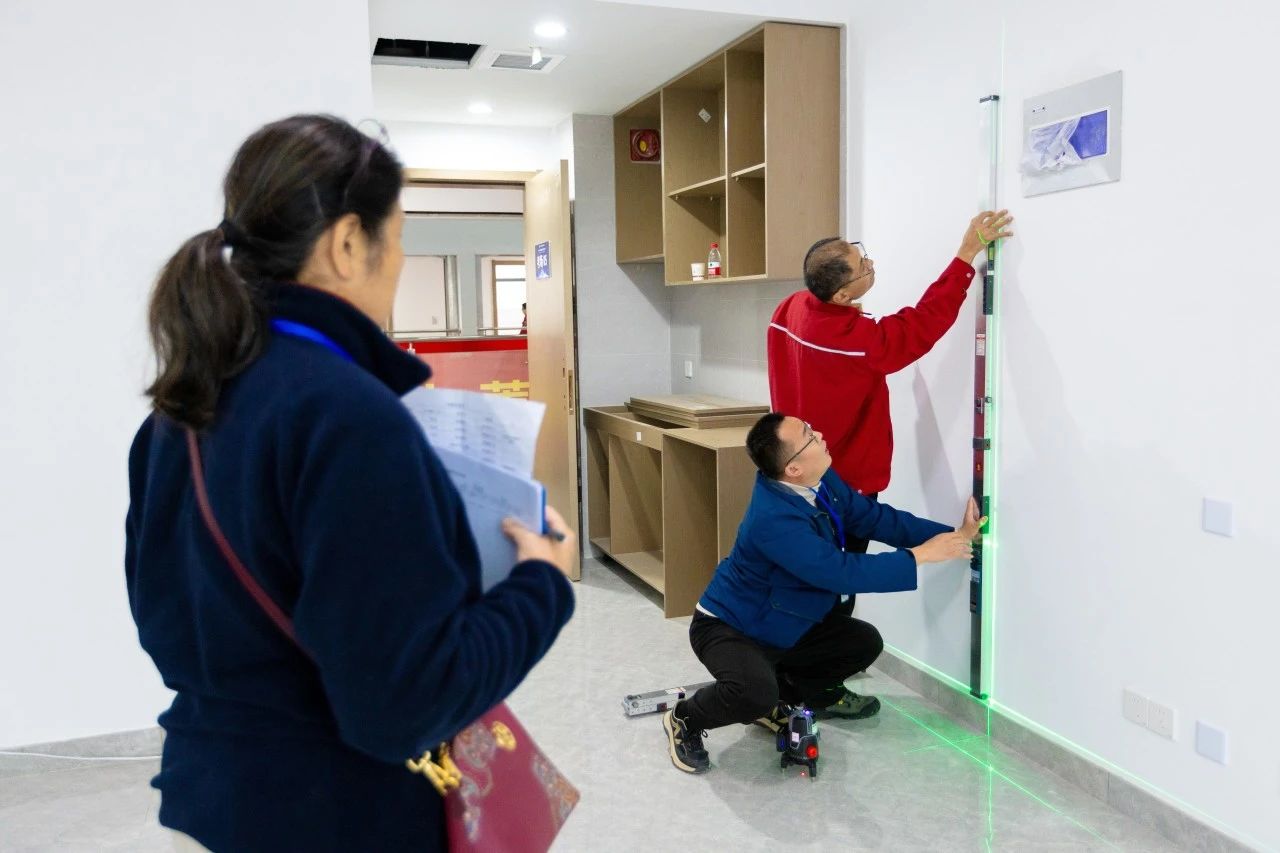 此次競賽立足行業(yè)實際工作場景,多維度、全方位地檢驗參賽選手的質(zhì)量檢驗專業(yè)知識和技能水平,設置理論考核和實際操作兩部分。理論競賽內(nèi)容包括法律法規(guī)、工程測量相關(guān)規(guī)范基礎知識等,實操比賽涵蓋了房建工程裝飾階段的測量。