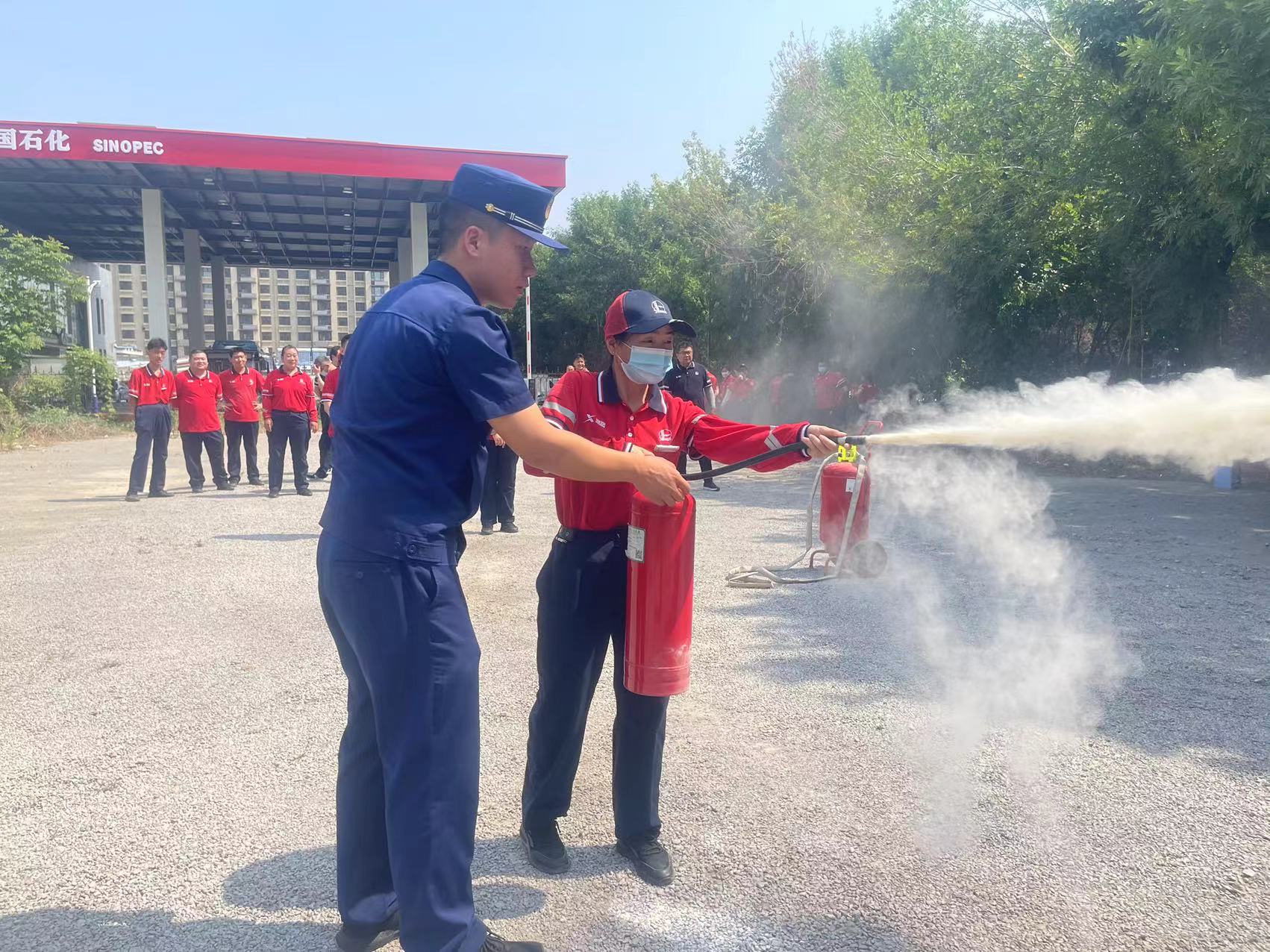 演練中,加油站員工按照平時的訓(xùn)練方法及演練方案,迅速開始實戰(zhàn)演習,使用消防器材進行滅火,火情被控制后,及時清理現(xiàn)場。加油員們將學(xué)到的消防知識及操作技巧運用到演練中,增強了應(yīng)急處理突發(fā)事故的能力,演練效果明顯,達到了預(yù)期的目的。