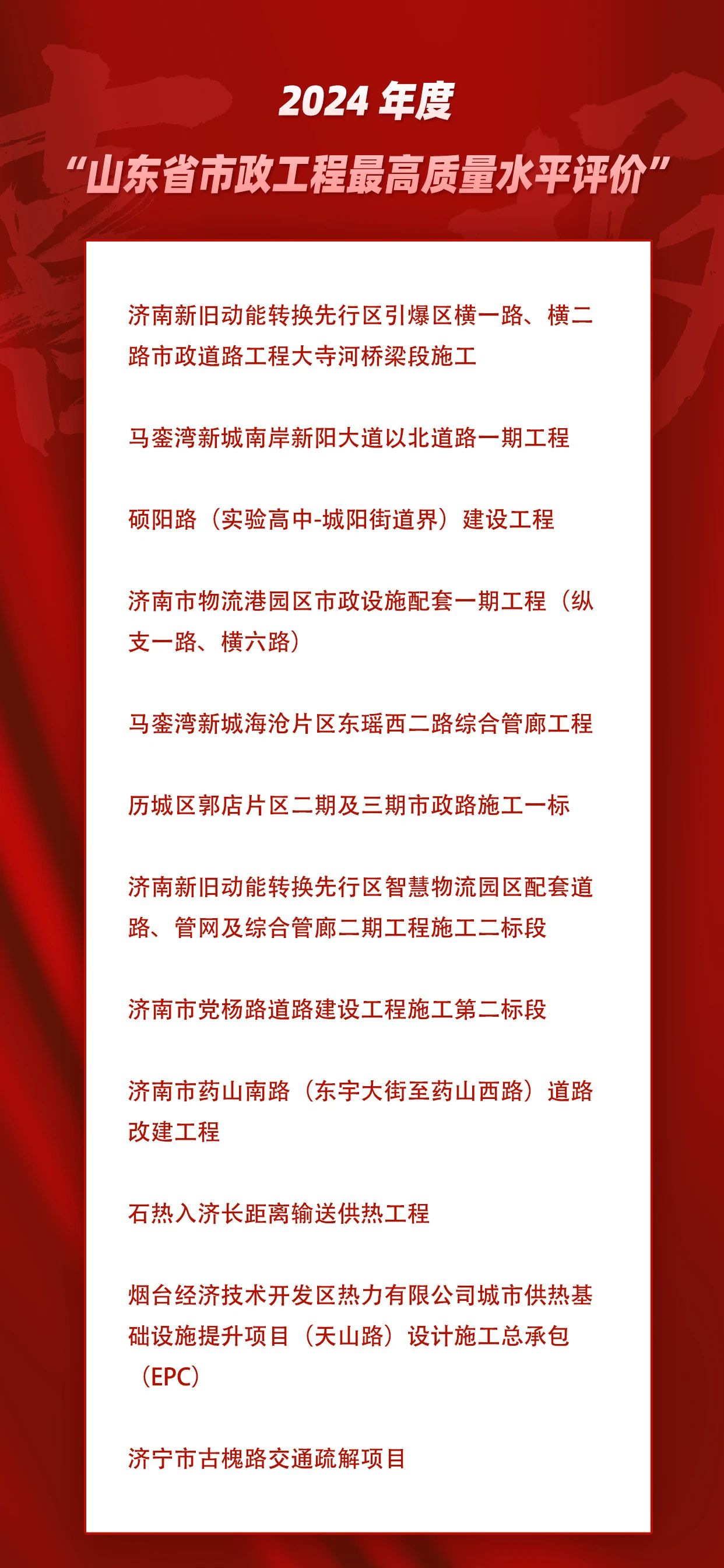 建設集團參與的12項工程獲2024年度山東省市政工程最高質量水平評價
